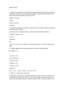 8 - Represente, no sistema de coordenadas cartesianas no plano, o vetor com origem em A e extremidade em B. Represente, também, o vetor AB cuja origem coincida com a origem do sistema de coordenadas. Determine o módulo e o versor de AB . a) ) 0, 1()3 ,2( BeA b) ) 1, 2( )2,5( B eA c) ) 0, 0( )5, 3( B eA 9 - Dados os pontos ) 1,3 () 5, 2( ),3, 1( CeB A , calcule. a) BA AC 2 b) AB CA 32 c) AC BABC 34
