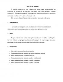 Pesquisar e dissertar sobre ordenações de estrutura de dados e aplicações. Ao final, elaborar um programa utilizando a linguagem de programação Java, que permita ao usuário gera números aleatórios de fazer a ordenação.