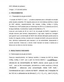 A solução de NaOH 0,1 mol L -! , já estava preparada para a utilização da solução pelas equipes presentes. Em seguida pesou-se em uma balança analítica a massa de KHP obtendo, respectivamente, três massas, 0,406g, 0,406g e 0,407g; Transferiu-se o KHP pesado para um erlenmeyer de 250 mL e o dissolveu em 50 mL de água destilada, e acrescentou 3 gotas de fenoftaleína a 1%.
