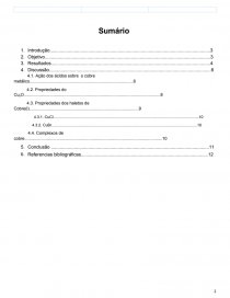 Relatório: Propriedades do Cu2O e dos haletos de cobre(l); ação de ácidos sobre o cobre metálico; complexos de cobre.