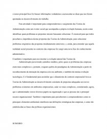 Neste desafio foi desenvolvido um texto, com um quadro comparativo das Teorias da Administração, a partir de uma pesquisa bibliográfica e da análise crítica de textos indicados, cujo resultado esta apresentado na forma de um Relatório Final. A pesquisa foi feita em livros e sites confiáveis da Internet, com o objetivo de levar à compreensão da Administração como evento social, já que surgiu para solucionar problemas de empresas inseridas na sociedade humana, e que suas mudanças acompanham as novas necessidades ocasionadas pela evolução social.