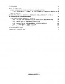 No primeiro capítulo, faz-se uma breve abordagem a respeito das sanções penais, destrinchando seu contexto histórico e jurídico; versa também, sobre os antecedentes criminais desde sua origem até sua evolução histórica, adentrando em seu conceito; ainda dentro do primeiro capítulo, discute-se sobre a reincidência frente ao Ordenamento Jurídico Brasileiro, trazendo de forma clara, seu conceito e aplicação.