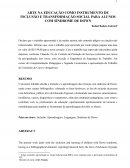 ARTE NA EDUCAÇÃO COMO INSTRUMENTO DE INCLUSÃO E TRANSFORMAÇÃO SOCIAL PARA ALUNOS COM SÍNDROME DE DOWN Rafael Batista Gabriel[1] Declaro que o trabalho apresentado é de minha autoria, não contendo plágios ou citações não referenciadas. Informo que, caso o trabalho seja reprovado por conter plágio pagarei uma taxa no valor de R$ 199,00 para a nova correção. Caso o trabalho seja reprovado não poderei pedir dispensa, conforme Cláusula 2.6 do Contrato de Prestação de Serviços